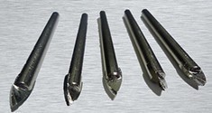 大孔開孔器:下圖所示開孔器刀頭是空心的,采用金剛砂制成,在刀頭壁上有開槽,便于排出廢屑,適用于大直徑孔鉆孔。